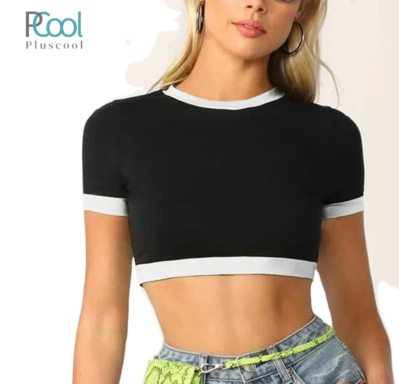 Fitted Ringer Crop Tops Slim Fit T-shirts for Women